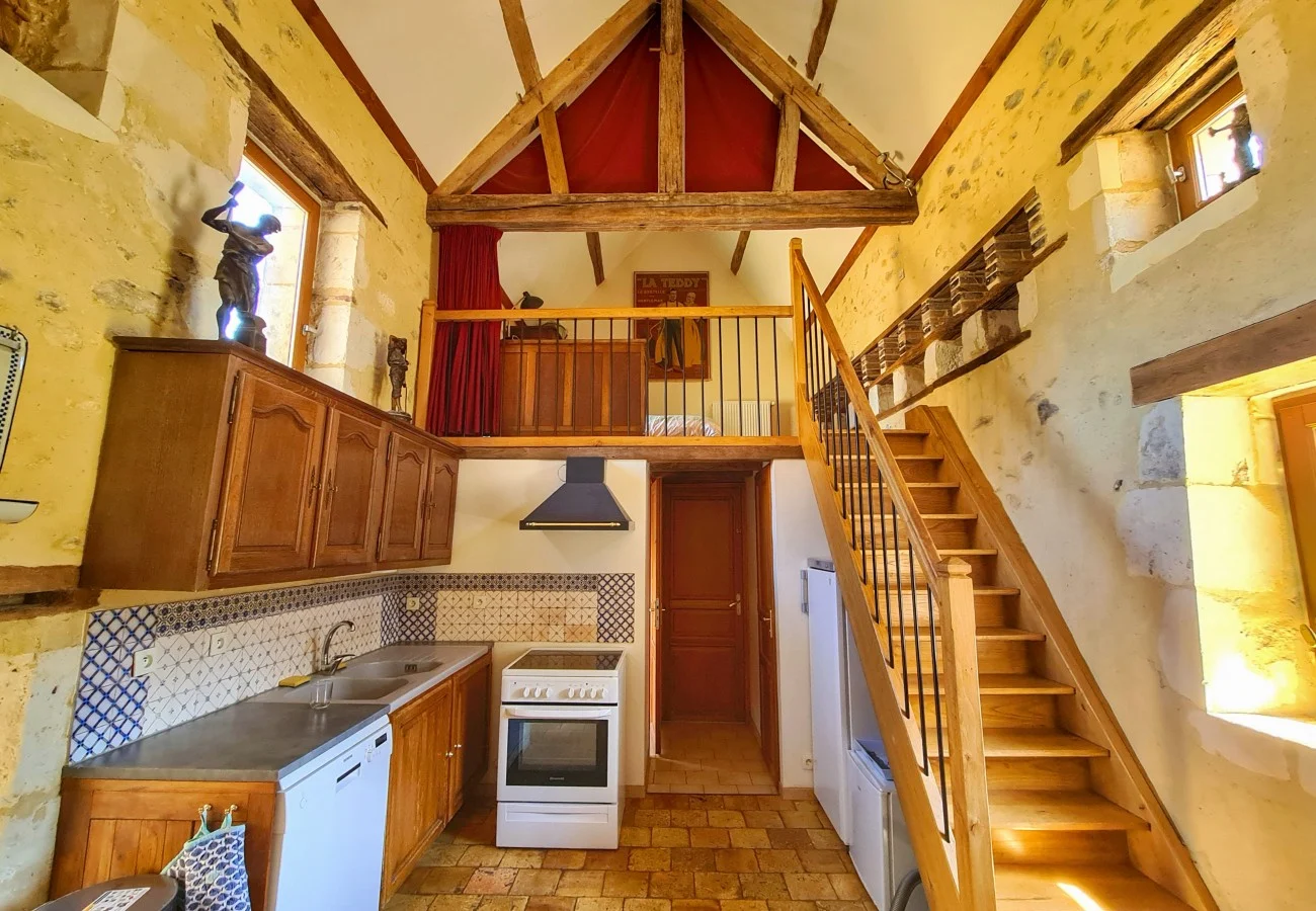 Alliant confort et fonctionnalité, la cuisine est un lieu idéal pour laisser mijoter de bons petits plats… Pour le petit-déjeuner, pour une soirée entre amis ou un diner en famille, tout l’équipement moderne est proposé. L’imposante hauteur sous plafond donne une sensation de grandeur… La luminosité valorise l’enduit à la chaux…