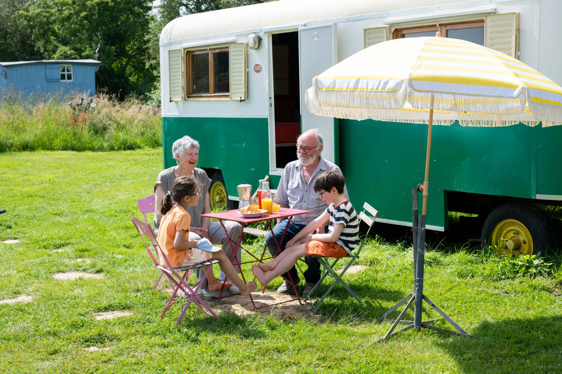 Pour se reposer après une randonnée dans la campagne du Perche, pour déguster une bonne salade de fromage de chèvre au soleil ou profiter du ciel étoilé de la région, cette caravane est équipée d’un salon de jardin et de plusieurs chaises longues.