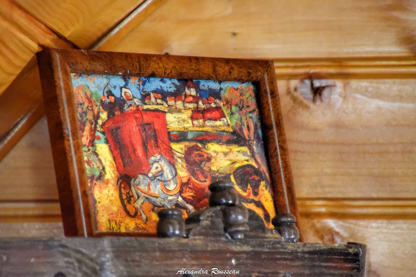 La décoration transporte dans l’intimité des forains, des circassiens et des clowns des « années folles ». Tables de nuit plaquées de marbre, réveils anciens, étagères sculptées, rideaux à fleurs… ornent cette chambre. Si le séjour se fait en famille, deux enfants (ou adultes) peuvent profiter des lits de la pièce de vie…