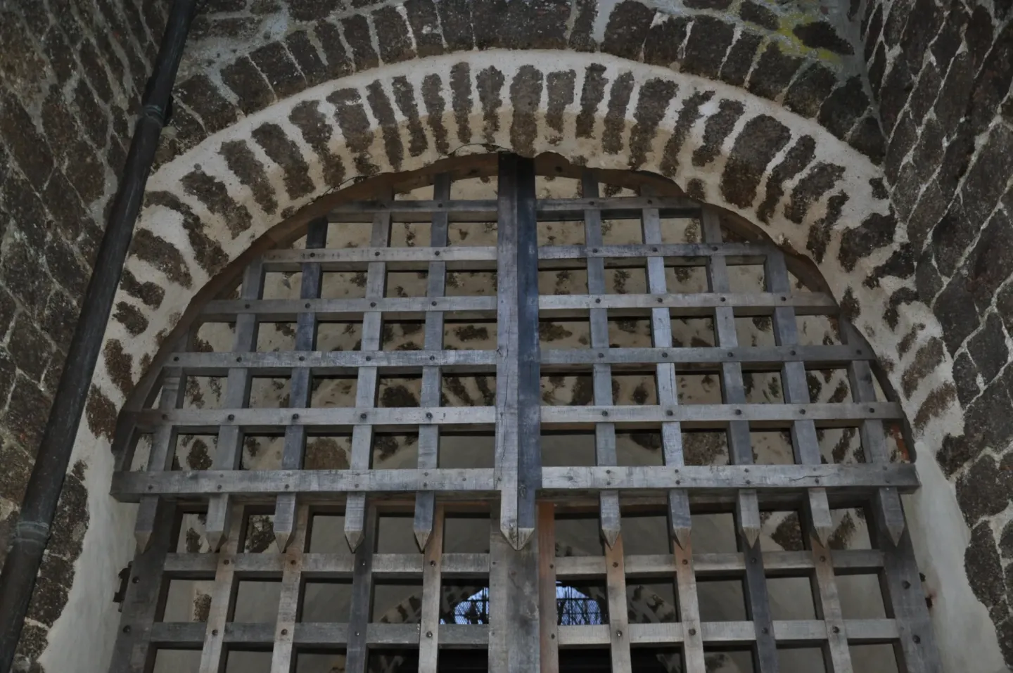 Du point de vue « militaire », le pavillon permet de contrôler l’entrée dans le domaine. Il est équipé d’un porche à double voûtes gothiques composé d’une grande porte charretière accolée à une petite porte cochère. Une charpente « à chevrons formant fermes » à quatre pans couvre le bâtiment. Durant la restauration, nous avons retrouvé les traces d’une ancienne herse qui confirme l’aspect semi-défensif du lieu. Un mur d’enceinte clôture l’ensemble du domaine. D’après le cadastre napoléonien de 1815 de Margon, quatre tourelles sont alors apposées autour. Pour plus de sécurité, l’ensemble de la façade ouest est équipée de petites ouvertures et d’une meurtrière.