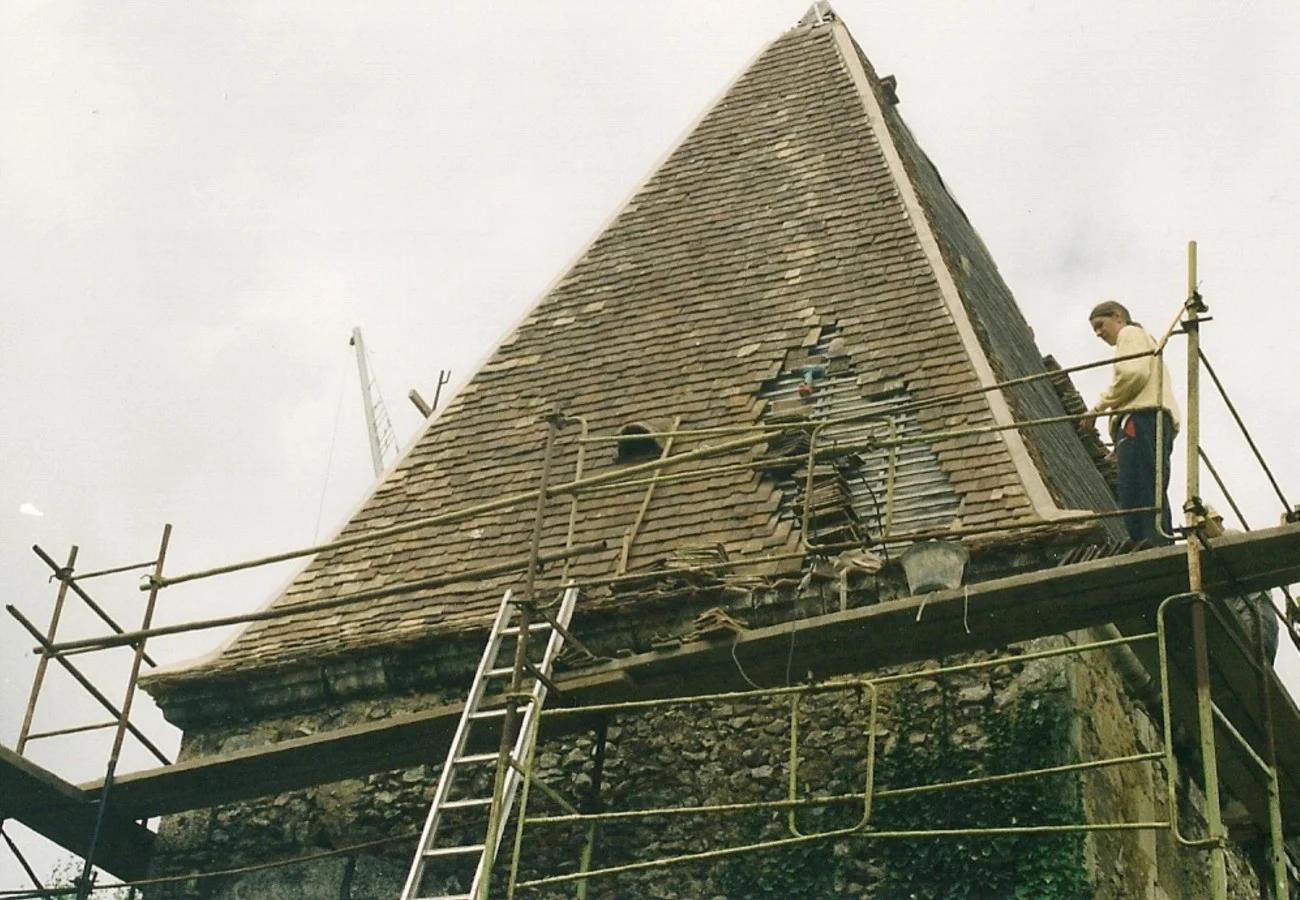 La plupart des toitures sont refaites, la charpente de la « tour » est totalement démontée et réassemblée, le porche retrouve son ouverture, des encadrements en pierres de taille sont refaits, les voutes d’un four à pain et d’une cave sont remontées…
