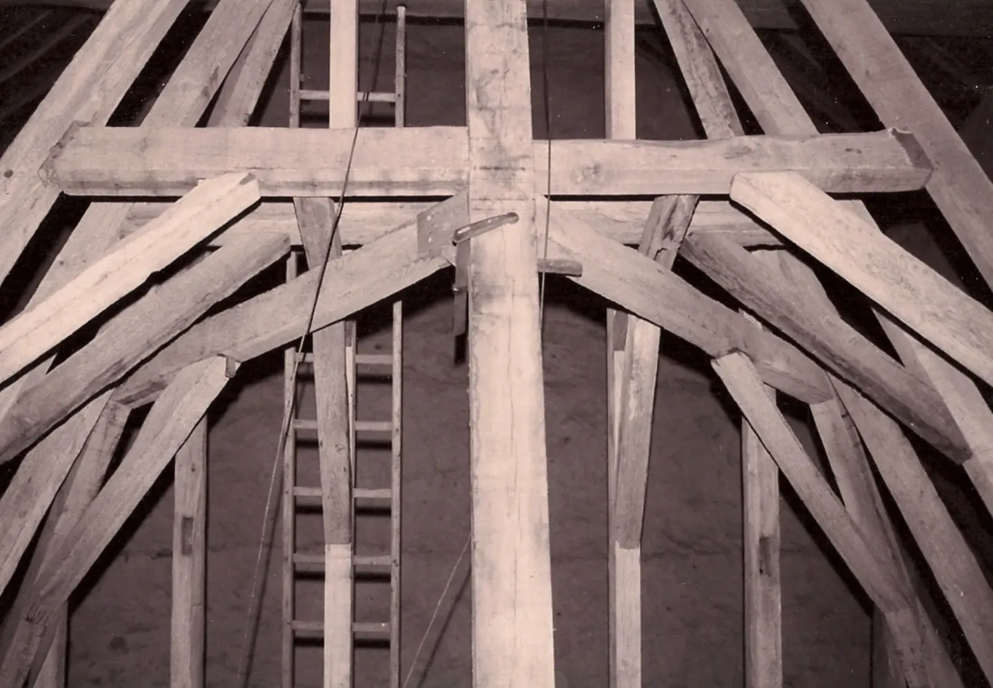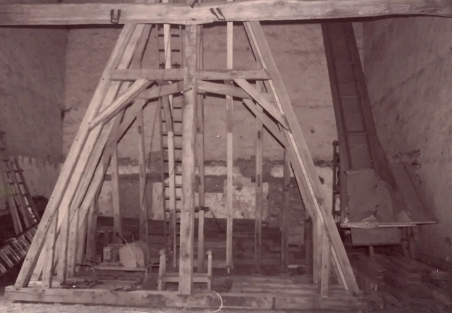 Les assemblages sont à la tire, sans aucun clou, des chevilles courbées en acacias ont été employés. Pendant toute cette période, il ne reste plus que les 4 murs du pavillon en pierres blanches et silex.