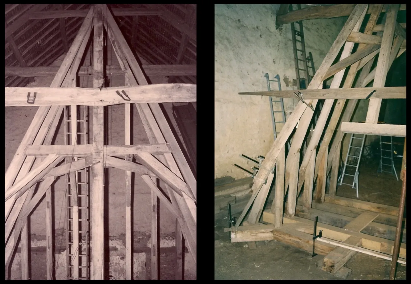 Un ami, Didier, investi cet ouvrage de charpenterie. Avec sa solide formation de charpentier, pendant 15 ans deux semaines par an (pendant les vacances d’été), il nous aide à refaire copie confirme cette charpente en chêne.