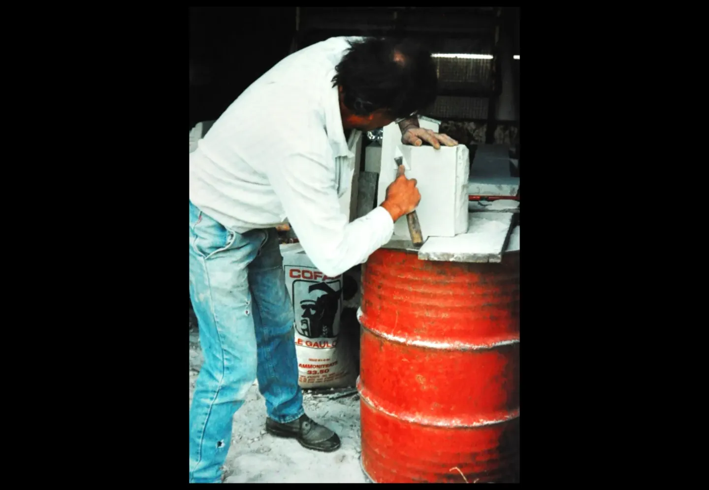 Depuis 1985, plusieurs fenêtres à meneaux, croisés, lucarnes, cheminées, ont été refaites. Quelle matière noble que la pierre, d’autant plus quand elle a du « nerf » ! La grande majorité des blocs provient d’anciennes bâtisses, elles contiennent un silex qu’il faut détourner ou tailler quand on travaille la pierre. « D’une pierre deux coups », la taille permet qu’elle trouve sa place parmi les autres pierres dans un ensemble harmonieux.