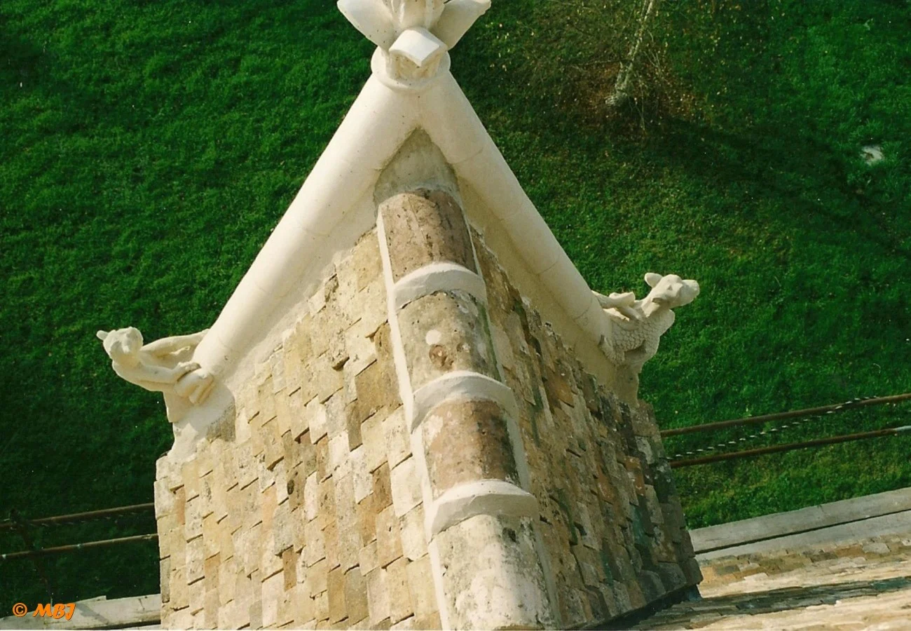 En 2002, après le remontage de la charpente de la tour, l’ensemble de la couverture a été restaurée. Nous avons utilisé des lattes en chêne comme à l’origine. Quelques tuiles d’origine ont été réutilisées, mais la plupart proviennent de lots achetés depuis 1986 dans différentes fermes du Perche. Compte-tenu de la pente de toit importante et des risques de tempête, le tiers des tuiles a été cloué. Des épis de faîtage en métal ont étés réalisés pour l’occasion pour dominer la bâtisse…