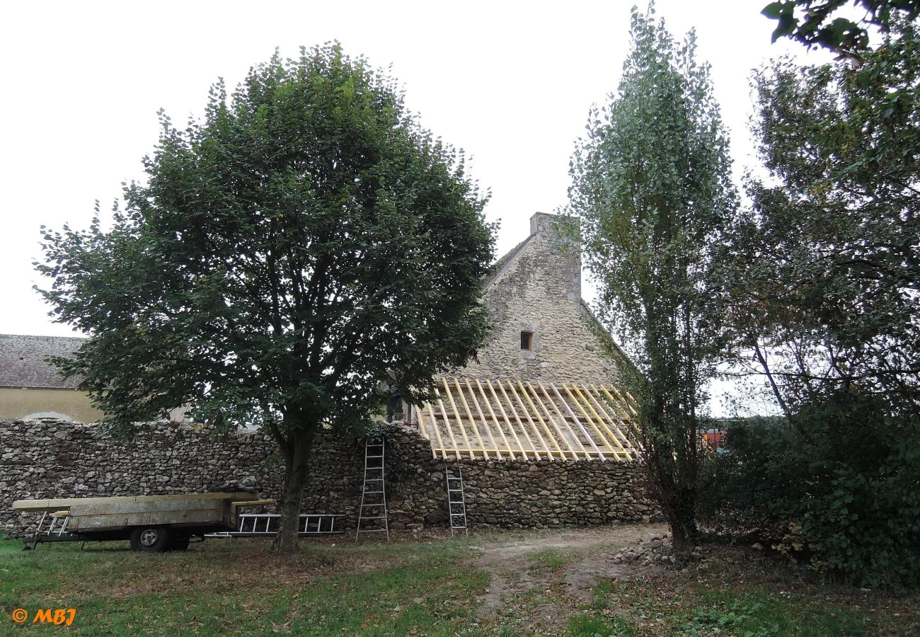 Des tuiles anciennes en terre cuite de récupération ont été posées. Les proportions du bâtiment ont pu être retrouvées à partir de la carte postale de 1905…