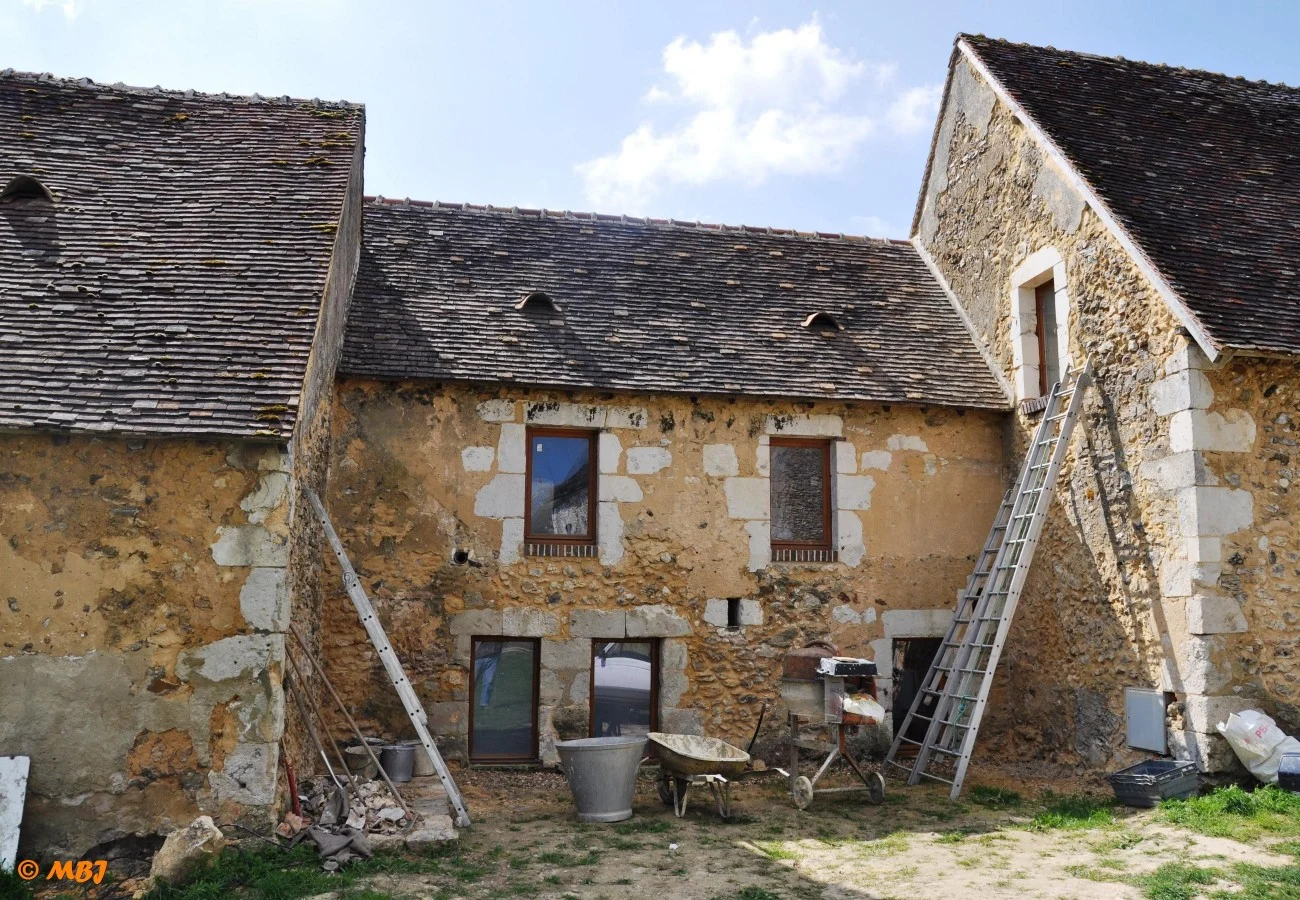 Après le montage de la tour, dans les années 2010, nous décidons de restaurer ce lieu pour en faire un gîte. Le projet est en tête depuis longtemps mais n’a pas encore pu être concrétisé… Pendant les week-ends et les vacances scolaires, les planchers sont refaits, les enduits, les sols, les encadrements… Nous réalisons tous ces travaux par nous-même et avec des amis. La plomberie et l’électricité sont réalisées progressivement à partir de 2015. Des artisans s’occupent de l’escalier et du chauffage…