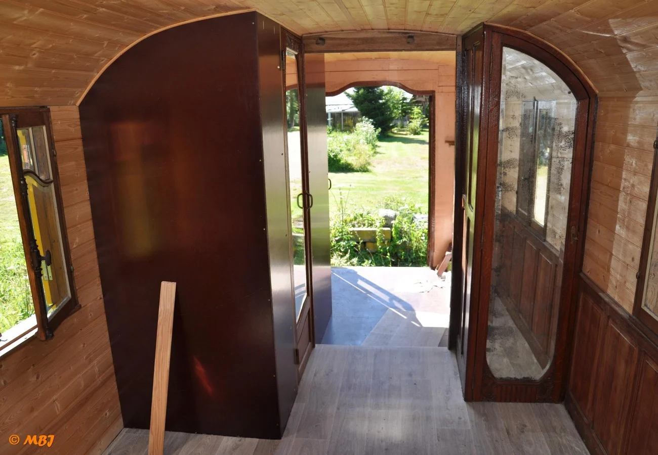 Quelle opportunité exceptionnelle ! Lors d’un mariage en Bretagne sur 4 jours, en discutant à table de passion, nous rencontrons Philippe et Agnès. Ils nous indiquent qu’ils ont une ancienne roulotte de cirque à vendre… Pendant plusieurs mois, celle-ci a été restaurée avec l’aide de Michel. Ils doivent par contre s’en séparer pour des raisons de santé…